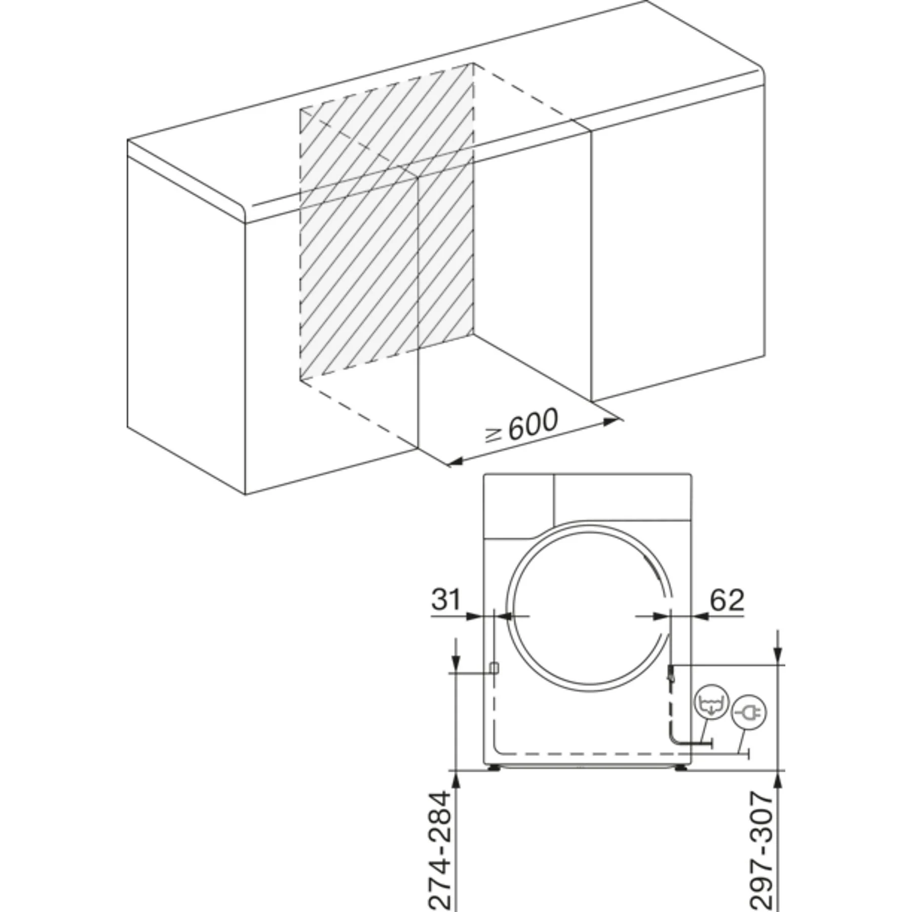 - Integrierte Kondenswasserableitung: Das Kondenswasser kann über einen Schlauch direkt ins Waschbecken oder in den Siphon laufen.